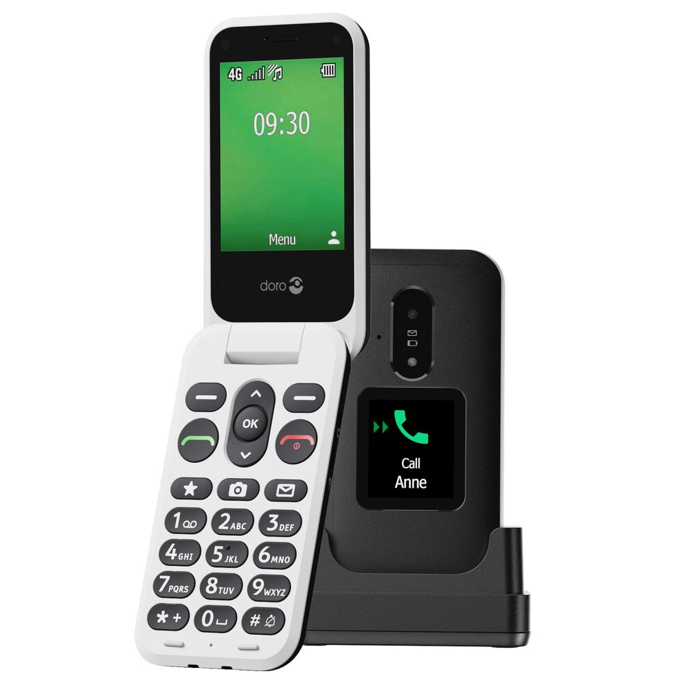 Téléphone simple d’utilisation équipé d’un écran externe qui permet d’afficher les appels entrants, d’un son clair et puissant ainsi que d’une touche d’assistance Doro Secure Button